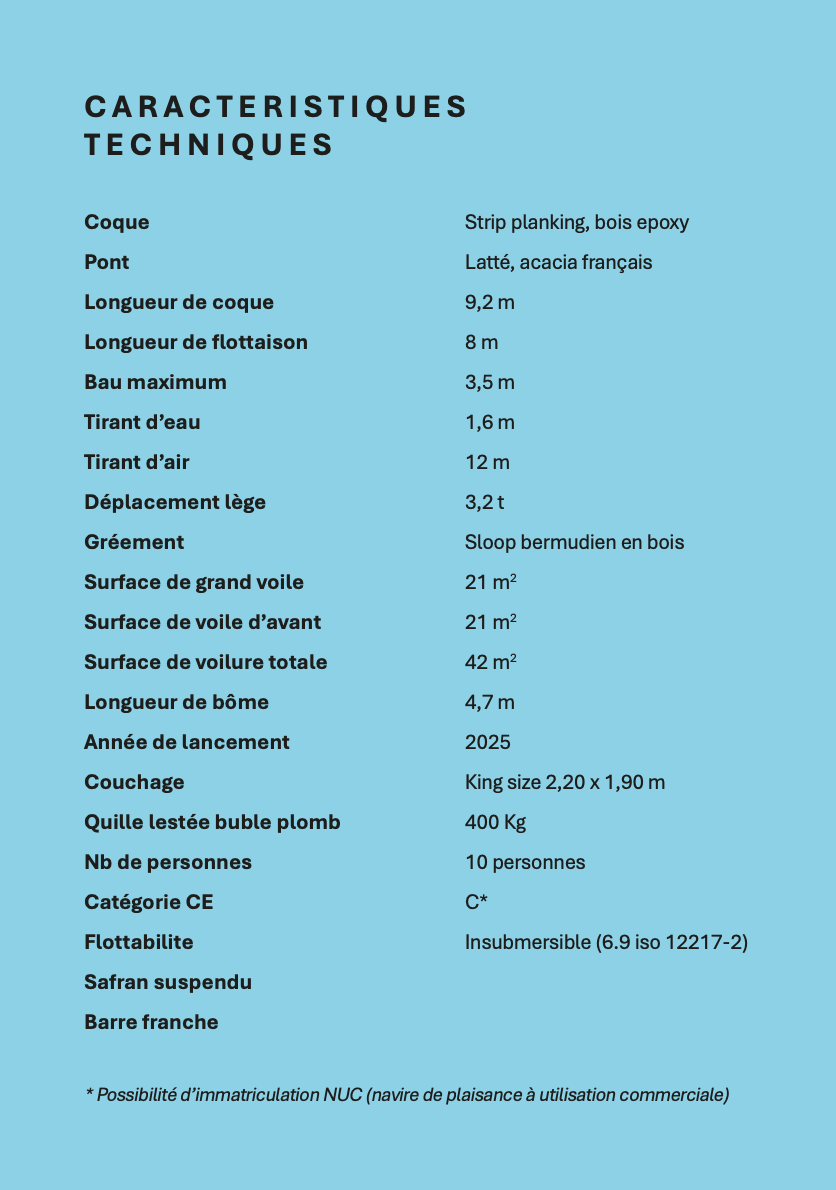 Si la carène et la structure restent inchangées, les choix de peinture, de vernis, de sellerie, de mâture ou d’équipements peuvent quant à eux faire l’objet de développements spécifiques.